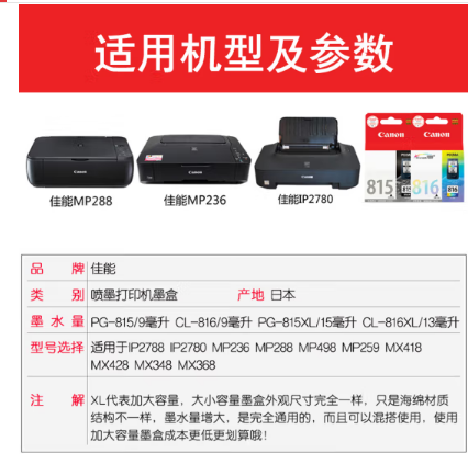 佳能(Canon)PG815系列墨盒 適用mp288 mp236 ip2780 標(biāo)準(zhǔn)容量815黑色原裝墨盒