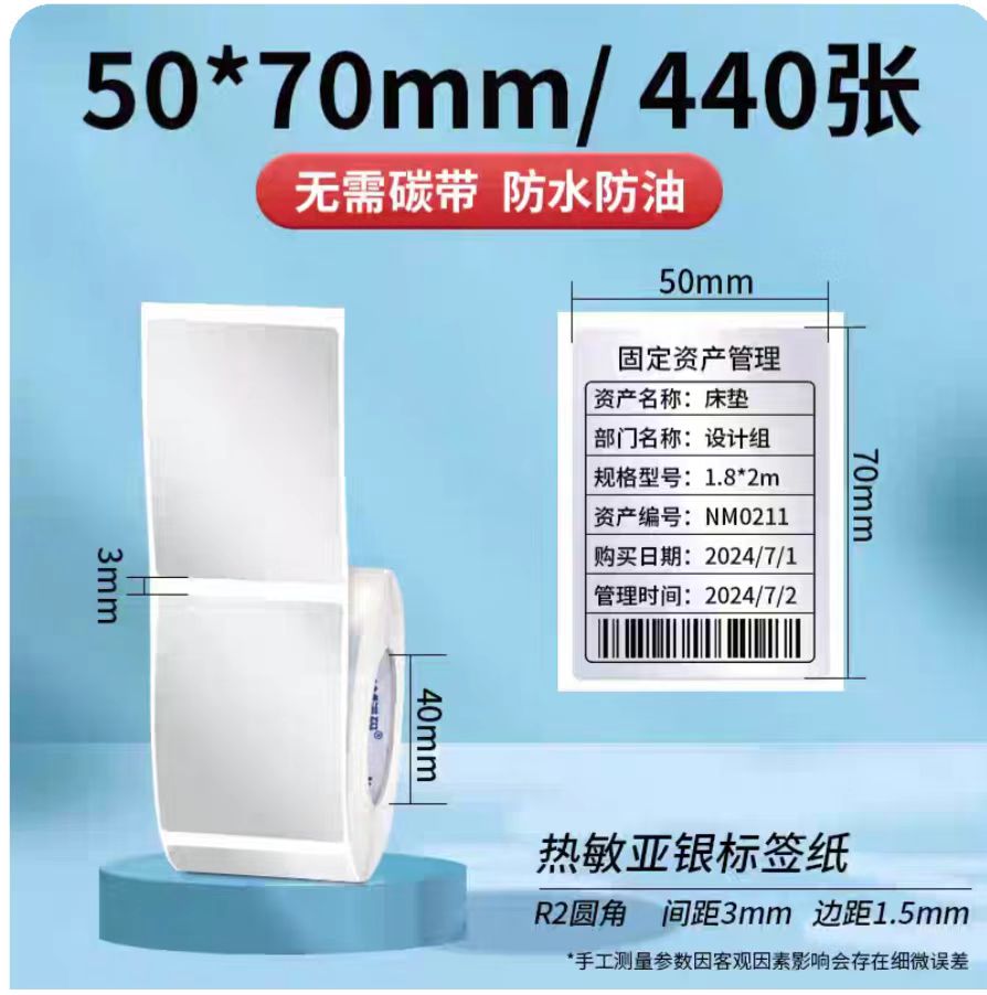三防熱敏亞銀紙標簽紙,固定資產(chǎn)貼50ⅹ70mm